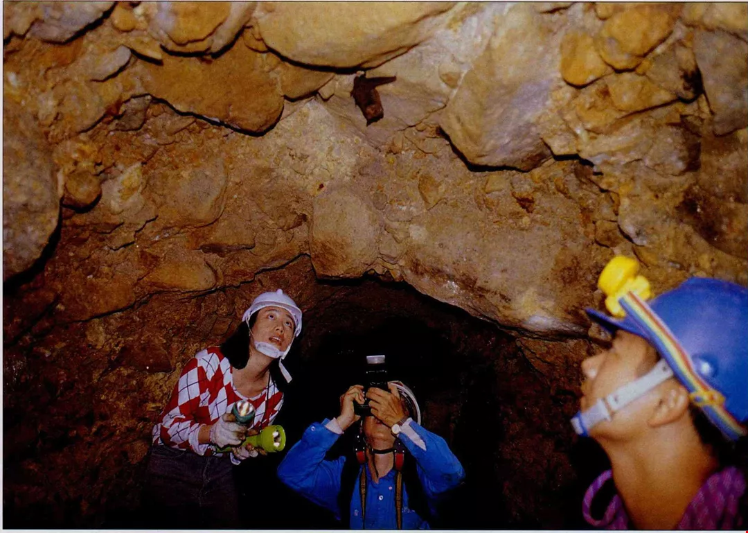 深入廢棄的岩洞,發現台灣夜鼻蝠棲息。(林盟山)