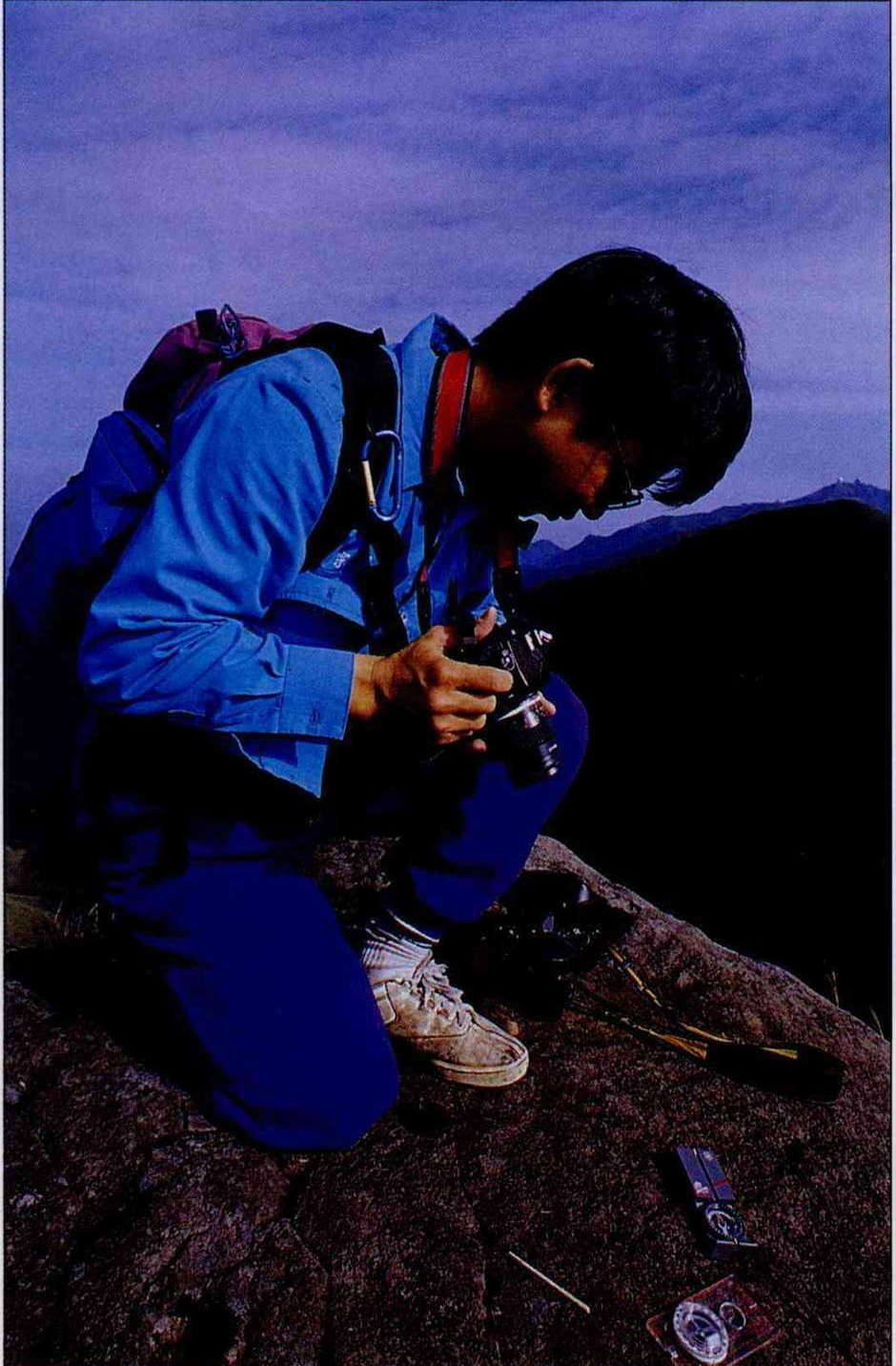 這是他第一次登山。過去,他看到過「野外」雜誌的登山報導,對山的嚮往已經暗暗滋長,而此時,是第一次親身站在山頂遼闊的眺望點,用自己的眼睛梭尋山河大地羅列的行跡。