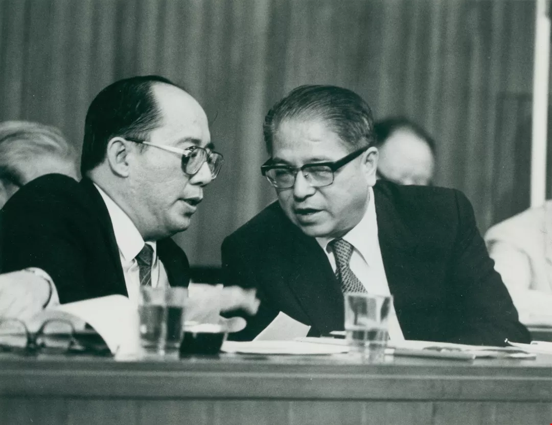 吳部長向前內政部長林洋港請益。(楊永山)