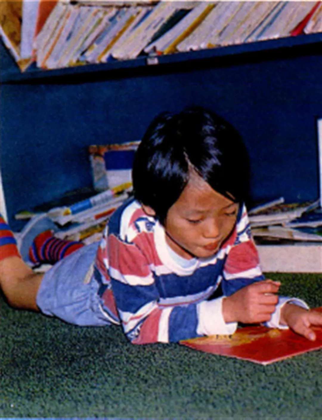 書,是採取開架式的,陳列在一個個的木頭格子裡,由小朋友們任意取閱。垃圾桶是一隻藤編的大青蛙,睜著圓眼,張著大口,等待著小朋友們將垃圾放在牠的嘴裡。一旁的矮桌上,還放了一個藍色的地球儀,兩本辭海,和一套中華常識百科全書,小朋友在看書時如果遇到疑難問題,可以立刻有地方查考,設想得真是週到。
