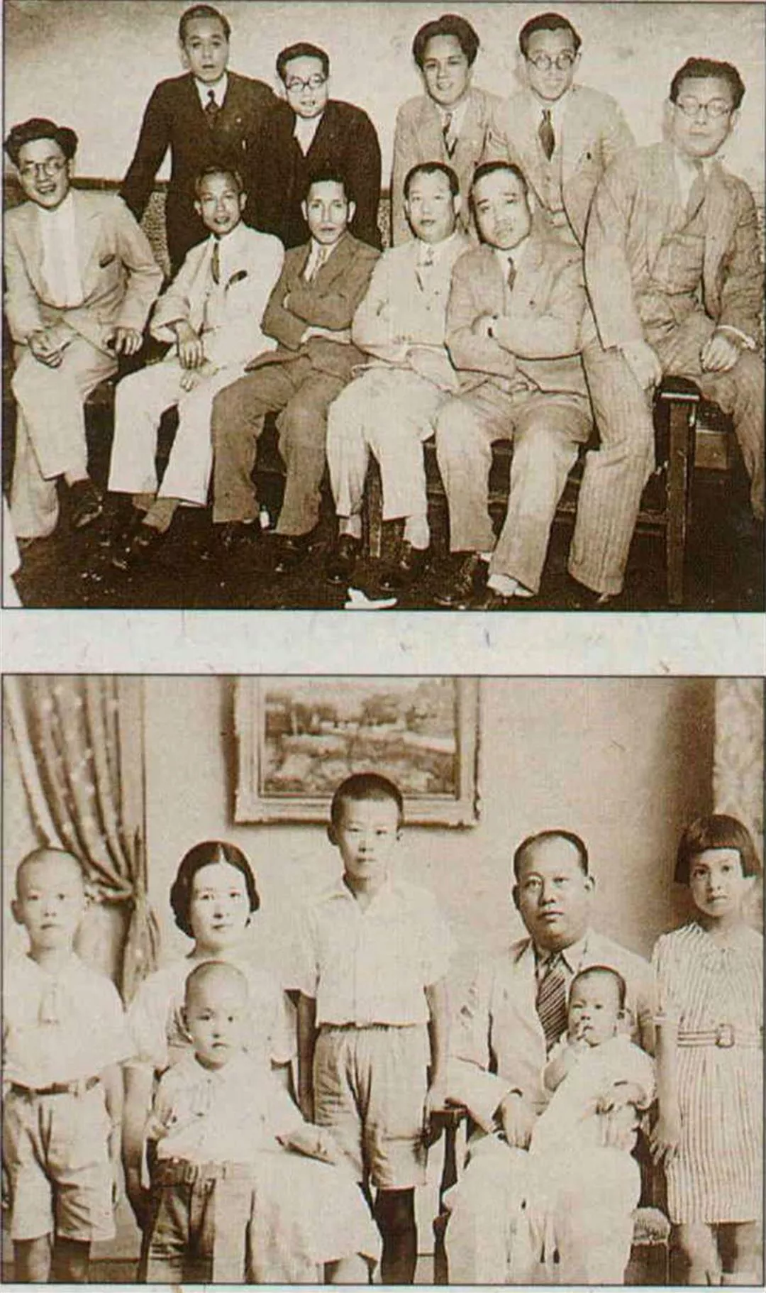 (上)這是吳三連當記者期間與報社同事的合影。(下)一九三八年八月攝的全家福,那時,四子俊民和五子樹民還未出世。