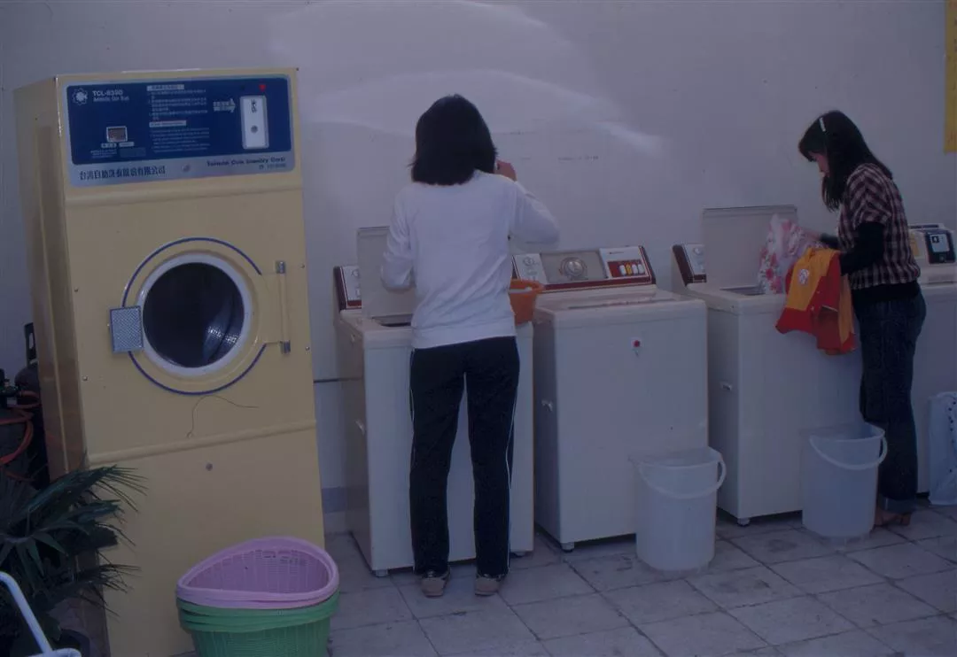 圖5.6:剛啟用的女生宿舍——恩慈樓,設備現代化,圖5.是地下室的自助洗衣機和烘乾機,。(鐘永和)