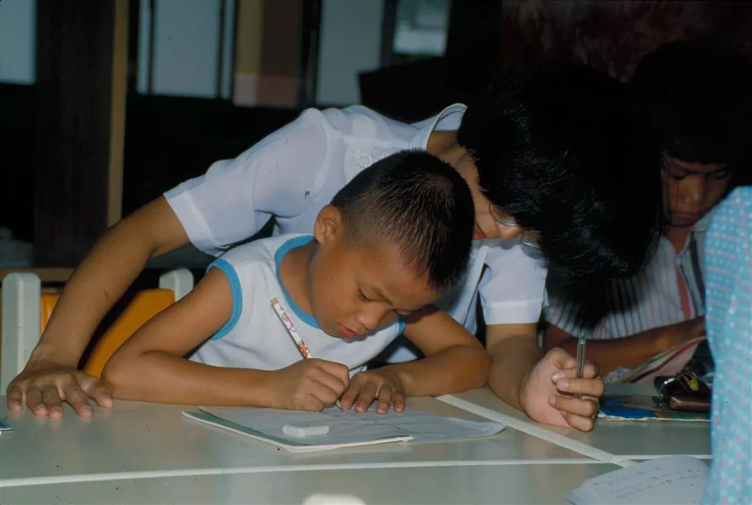 吳阿姨教導院童寫作業。(歐陽芷汀)