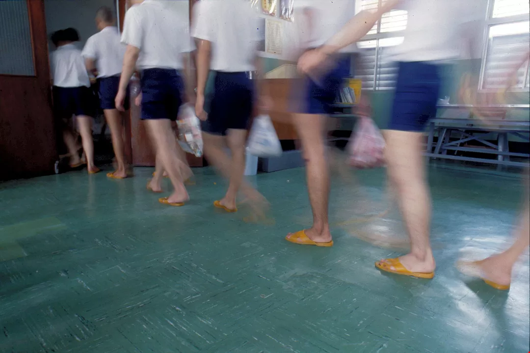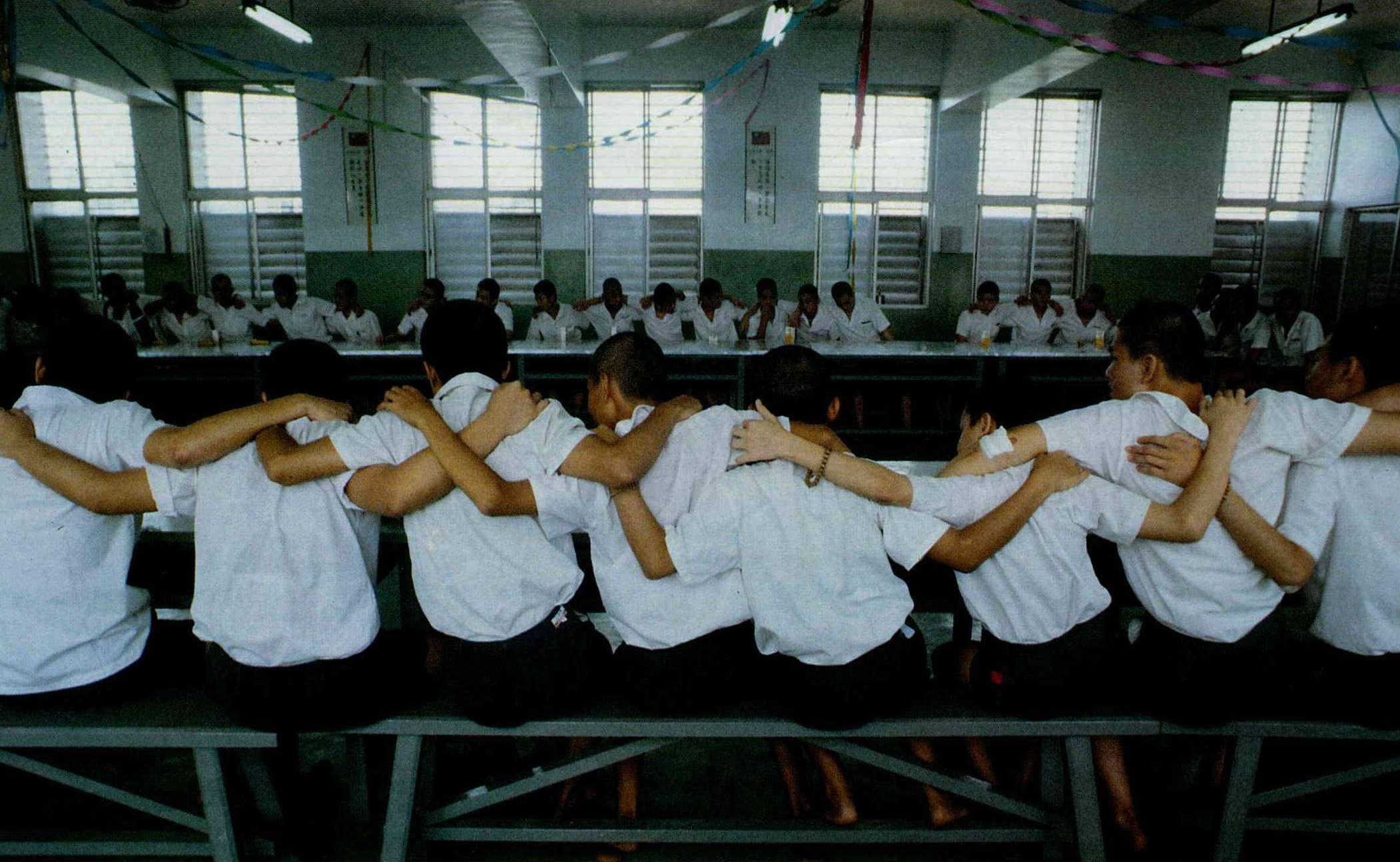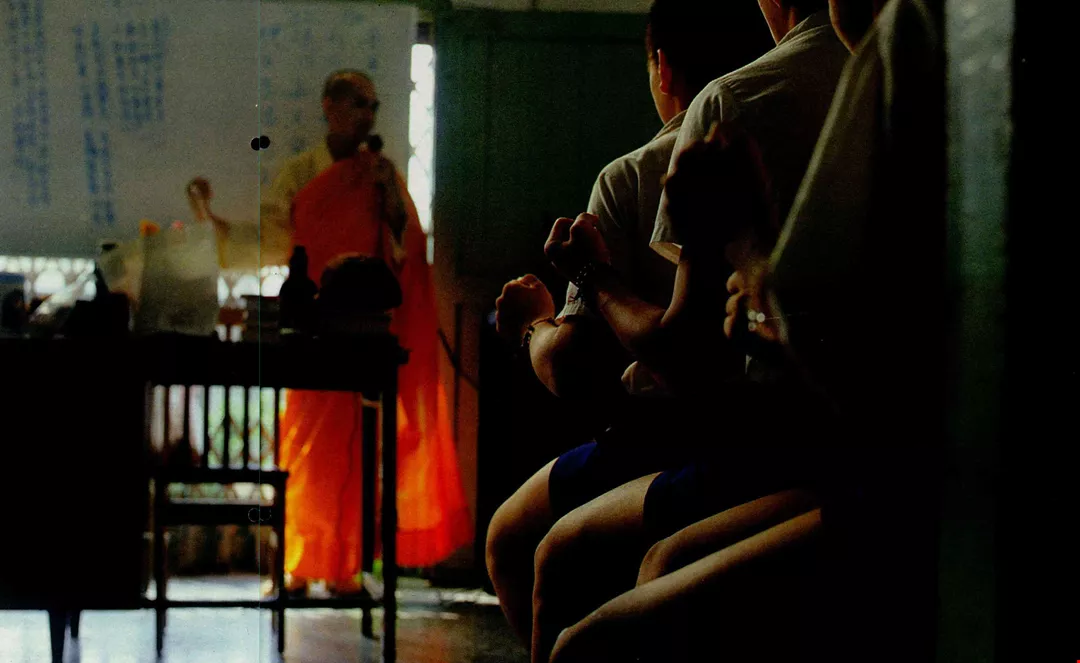 當這群被重重鐵門禁閉、身著白襯衫、藍短褲、塑膠拖鞋的光頭「小和尚」雙手合十、低首歛眉唱著歌時,沉靜安祥的使人懷疑身處何所寺院?