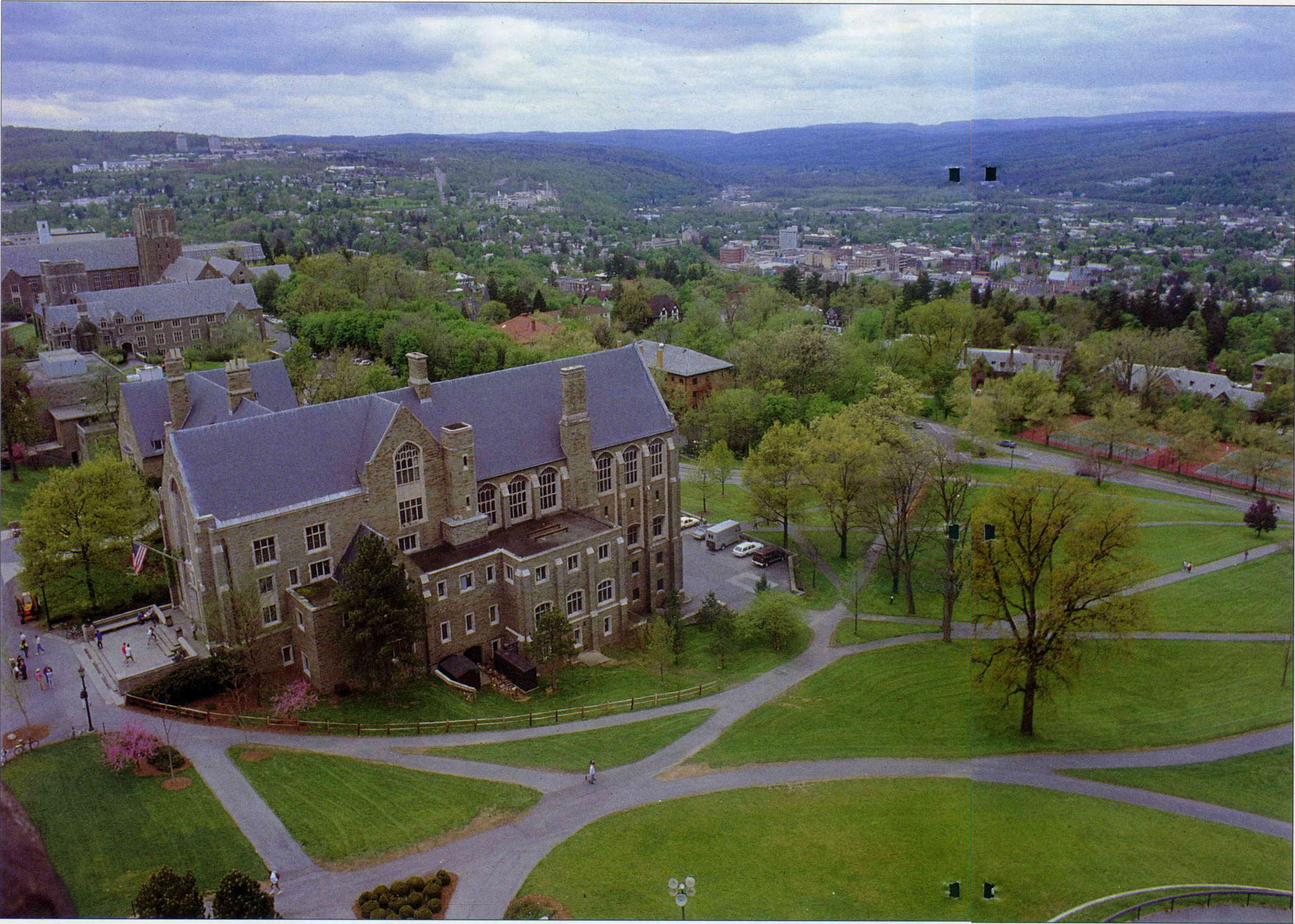 康乃爾大學是美國長春藤名校中最年輕的一所,也是貴族色彩最淡的一所。它不但公私立系統並存,形成「一校兩制」的特殊制度,對學生也是兼容並蓄。早在一百廿年前創校初期,招生時就對各種背景的申請者——不論黑或白、貧或富、男或女……一視同仁,堪稱是有教無「類」的一流學府。