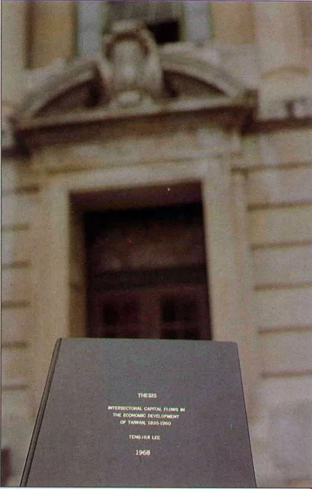 李總統於一九六五年進入康乃爾大學農業經濟系博士班就讀,那時他已四十二歲。學校老師形容他:「跟其他同學很不一樣,很少在郊遊、打球等課外活動場合看到他,總在圖書館、研究室裏頭,是個很像學者的學生。」他的博士論文「農工兼資本移動問題——一八九五到一九六○年間台灣個案研究」,一舉榮獲一九六九年美國農經學會全美論文獎。去年十一月現任康大校長羅茲還曾來台,為這位康大出身的第一位國家元首,頒發「榮譽校友狀」。