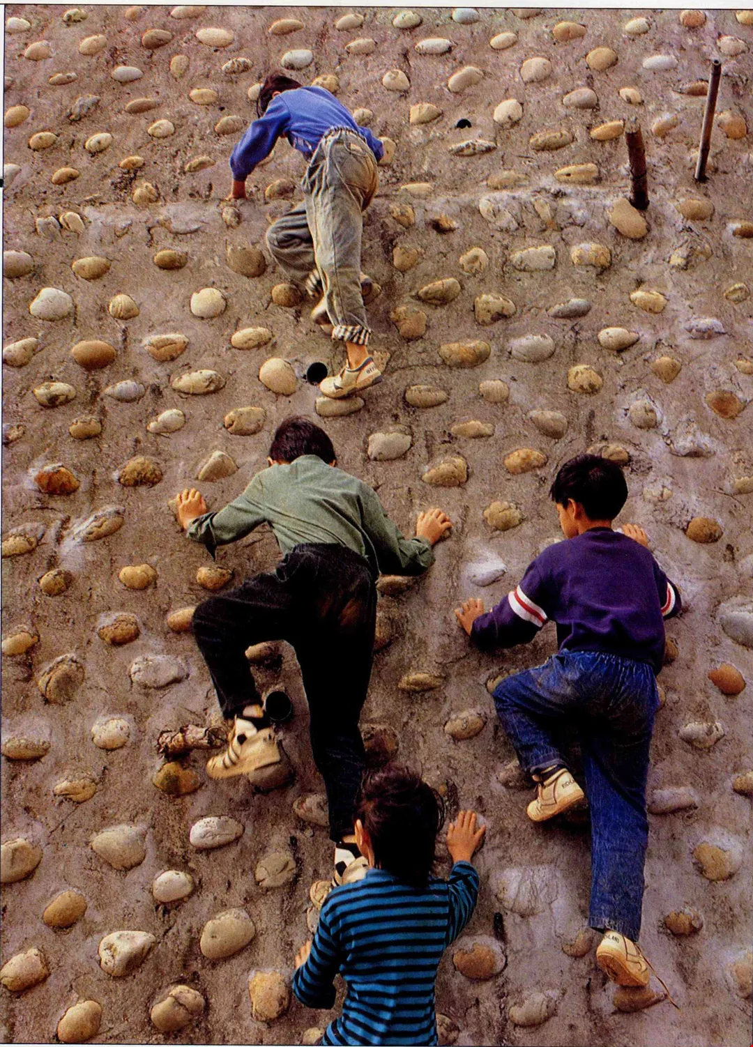公寓式的住家,家家大門深鎖,少有交往;每個孩子參加的才藝班、補習班時段不同,很難一放學就聚在一起;加上車輛暴增、犯罪及色情入侵住宅區,更使得許多父母不准孩子在巷弄裏逗留……。空間、時間被壓縮了,玩伴也無處可尋,現代孩子的玩心,恐怕只能發洩在冰冰冷冷又沒有創意的電動玩具、和虛榮浮華的芭比娃娃身上了。