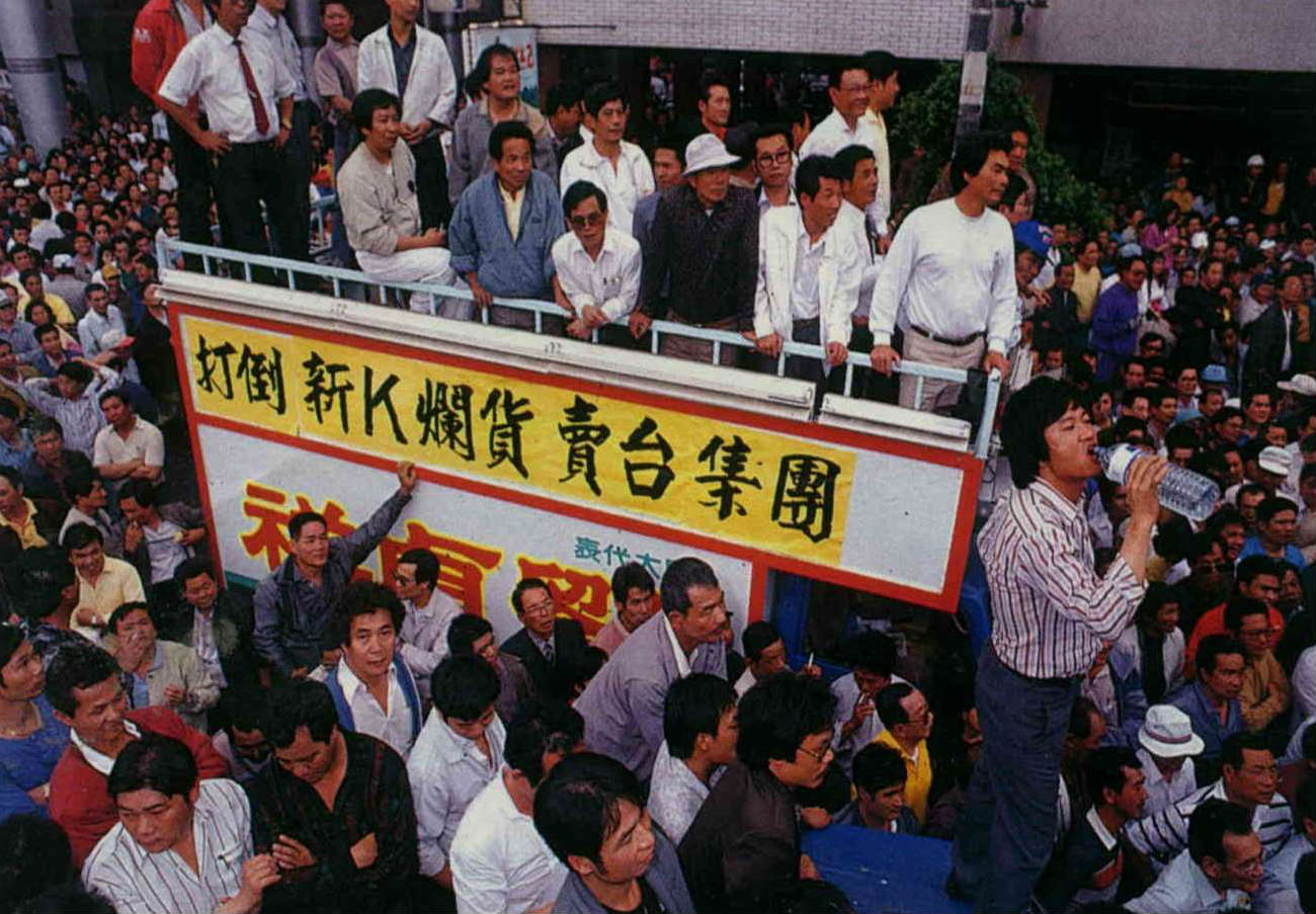 語言是彰顯族群的標記之一,被認為有濃厚大陸省籍色彩的新黨前身——「新國民黨連線」到高雄辦演講,引起省籍衝突。圖攝於一九九三年。