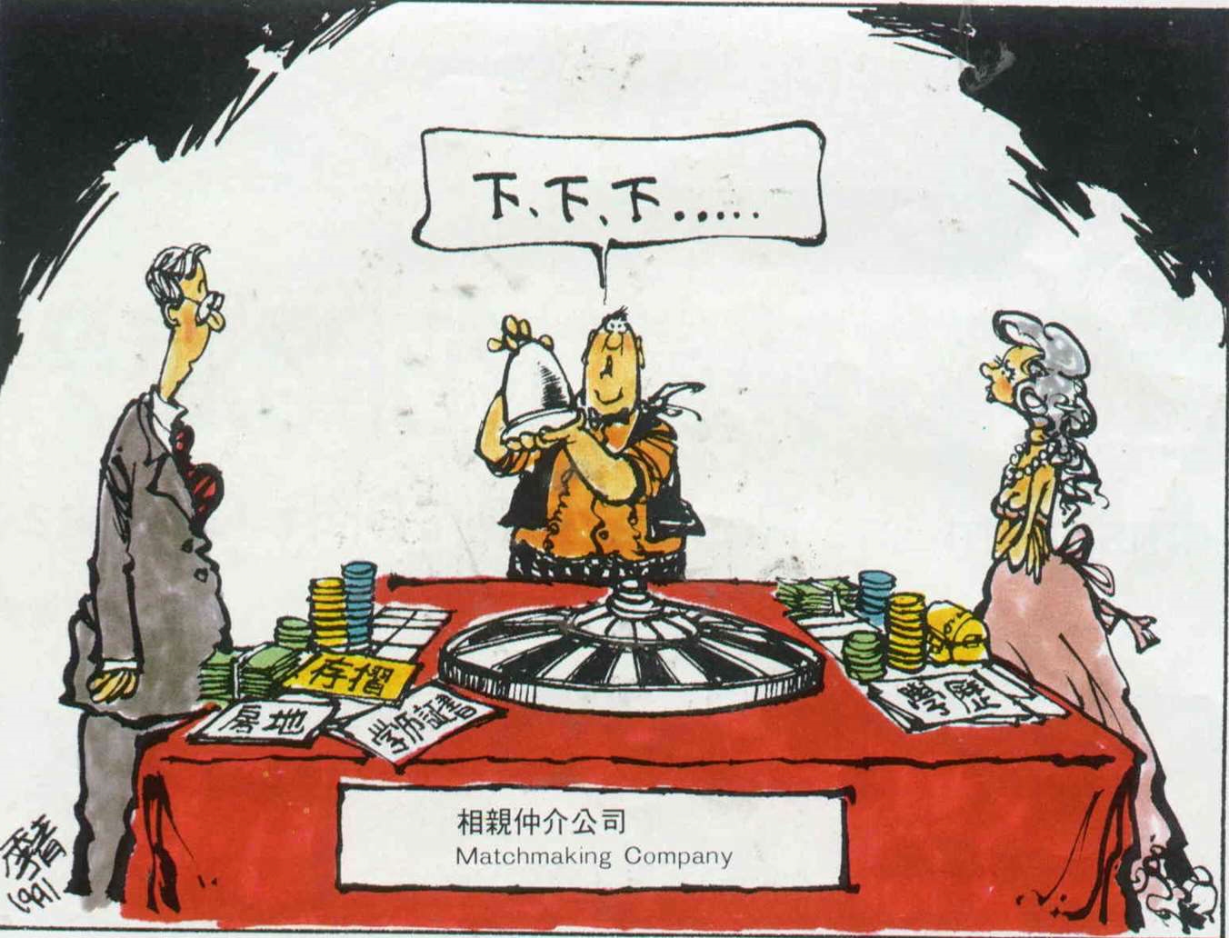 又是下班時刻,兩位妙齡女子在婚友社樓下徘徊,大概是有些遲疑。商業式的婚姻仲介公司,或許有助於部分男女找到伴侶,然而仲介兩性畢竟不同於一般商品買賣,找錯了紅娘,只怕未覓佳偶,反而失財失人。幾家較老牌的婚友社透露,曾有會員告訴他們,有的婚友社由於會員不多,竟找了一些外在條件不錯的男女當「槍手」,以招徠會員;有的收了一批會費後,就人去樓空;有的甚或就是色情仲介場所;也有不肖分子謊稱單身,遊戲其中,使得婚友市場風聲鶴唳。