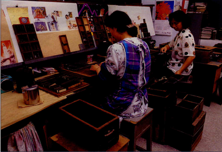 活版技術學了三、四十年還不夠,但是電腦排版的學習只要學幾個月就可以熟練自如,曾經有活版老師傅一個小時最快可以檢到兩千字,但是學了三個月,手腳利落的小女生用電腦輸入文字,一分鐘最少六十字,而且錯誤的改正更快,老師傅如何比呢?