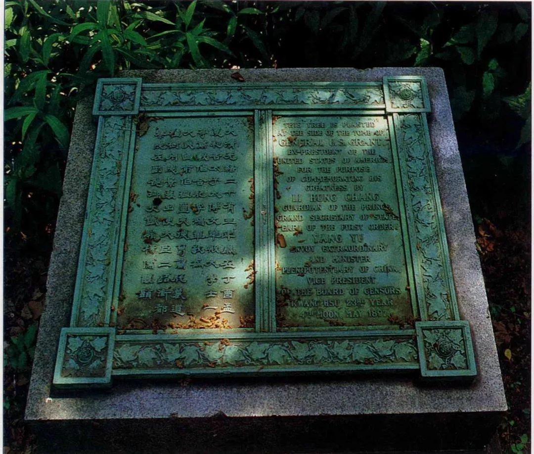 哥大有關中國的三景之一。這碑文之後,有二棵樹為清末名臣李鴻章親手所植。(卜華志)