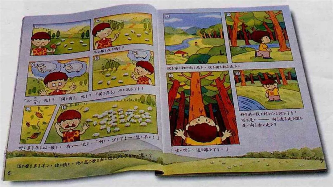 這則漫畫最後總結問孩子一個問題:「這麼多羊,他怎麼知道少了一隻?」教科書新世代來臨!