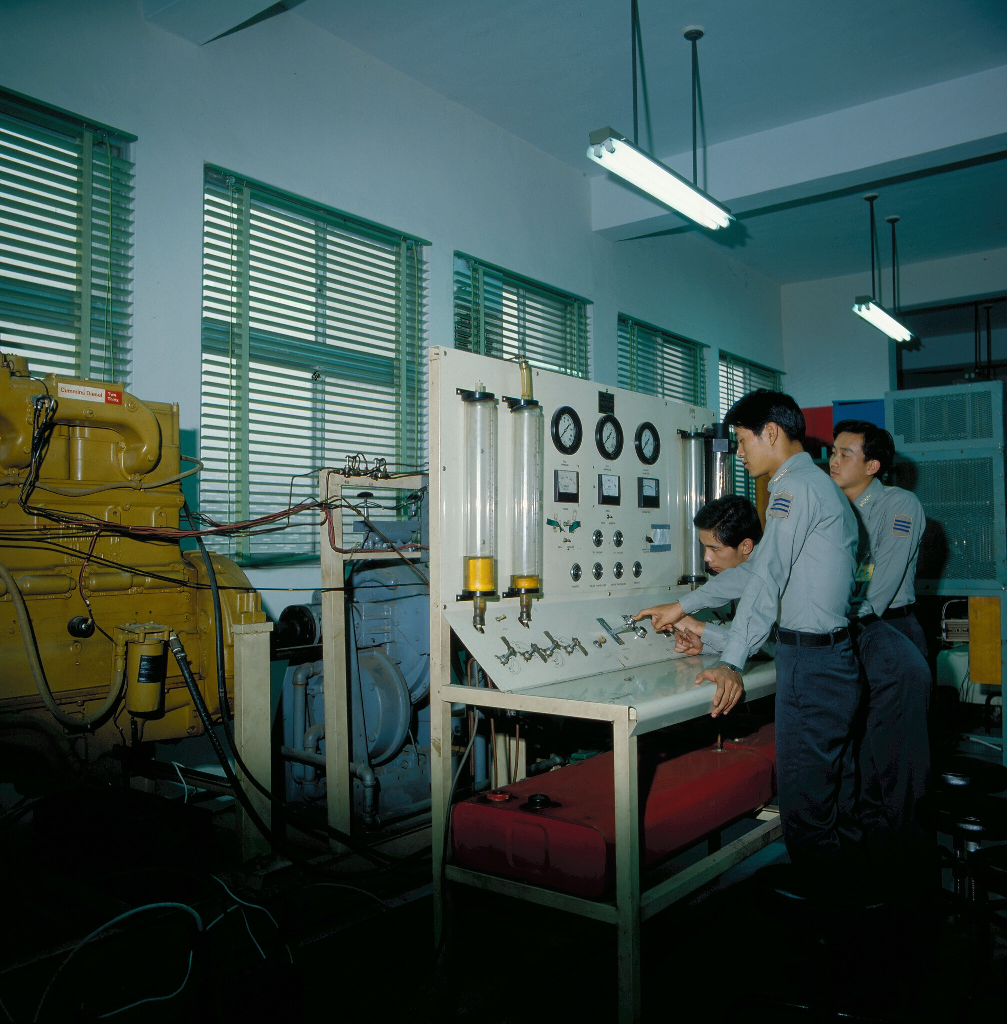 工廠實習是工學部的共同科目。上課時,在老師的教導下,學生親自動手操作車床、銑床、鉋床……等器械,而鉗工、銲工、鑄工、木工,也都是實習的重要課目。由於師生對實習課程都很看重,教習都極認真,所以每個學生都能掌握到竅門,以後當「技勤官」時,便不會有外行領導內行的情形出現。事實上,院內的傢具或電器設備如有損壞,就由師生一起修護,一方面可以為校方省錢,一方面學生又可增加實際工作的經驗。