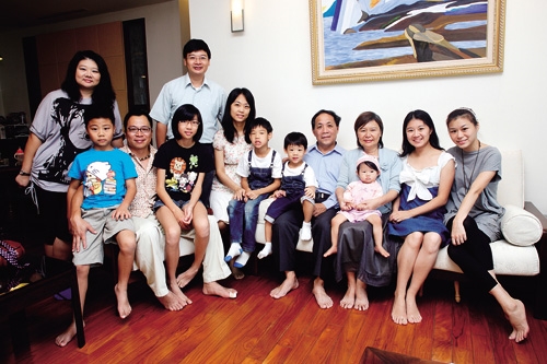 要全家齊聚一堂拍一張全家福,對忙碌的現代人來說,難度頗高。即便是「免費到府拍攝」,約了2次,林家人仍舊沒能全員到齊。漏網之魚──三女婿──因為工作的關係,沒辦法在星期六早上回岳父母家拍照,最後只好在「13缺一」的情況下,拍了這張小有遺憾的「全家福」。