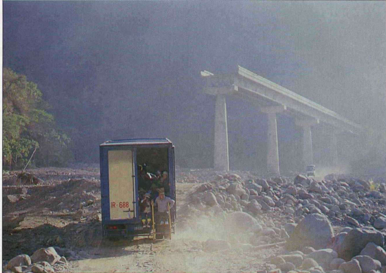 「現在的溪床已經比以前的橋面高了,」指著溪床,何明德說,以前造的善天橋只有四十公尺長,如今在原地再造的行天橋卻要一百二十公尺。河床被大水破壞得如此嚴重,也就難怪善天橋被連根拔起、無影無蹤了。