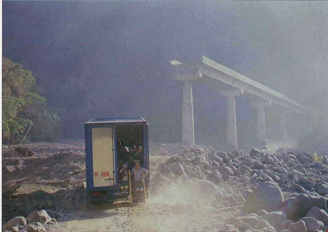 山路蜿蜒,風景宜人,但車上的人暈的暈、睡的睡。不知昏睡了多久,忽然車子開始蹦蹦跳跳地顛簸起來,把每個人都搖醒了。