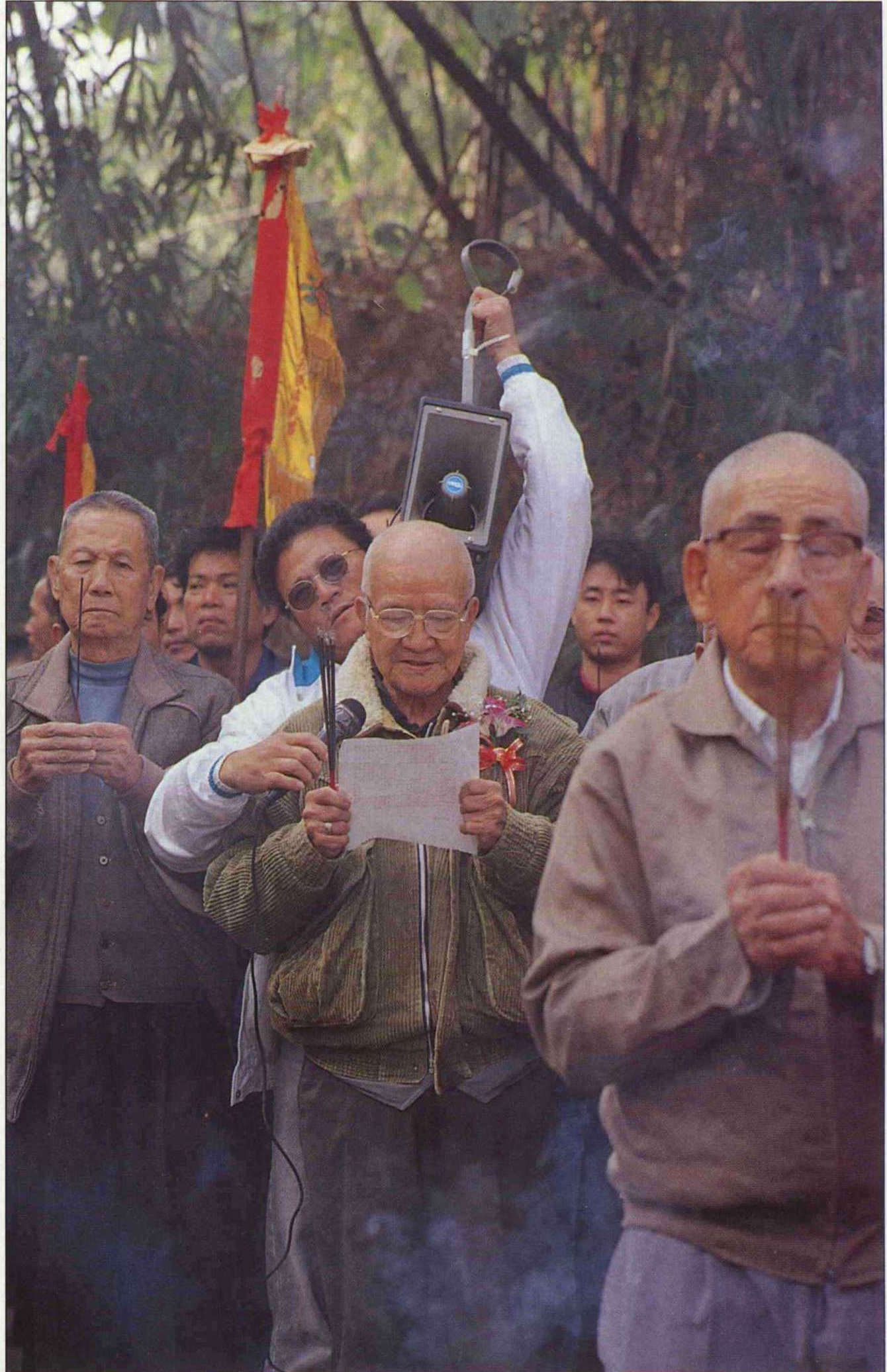 在破土儀式中,何明德照例要敬告天地神祉,祈求造橋工作平安順利。(薛繼光)