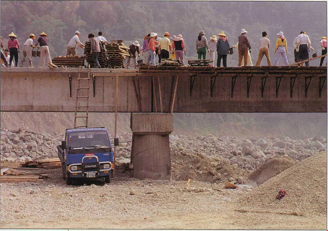 原來大部份是有經驗的「造橋」老手,一位造橋元老告訴我們,早期參加造橋的只有幾十個人,大都自己騎腳踏車或摩托車到造橋現場來做工。
