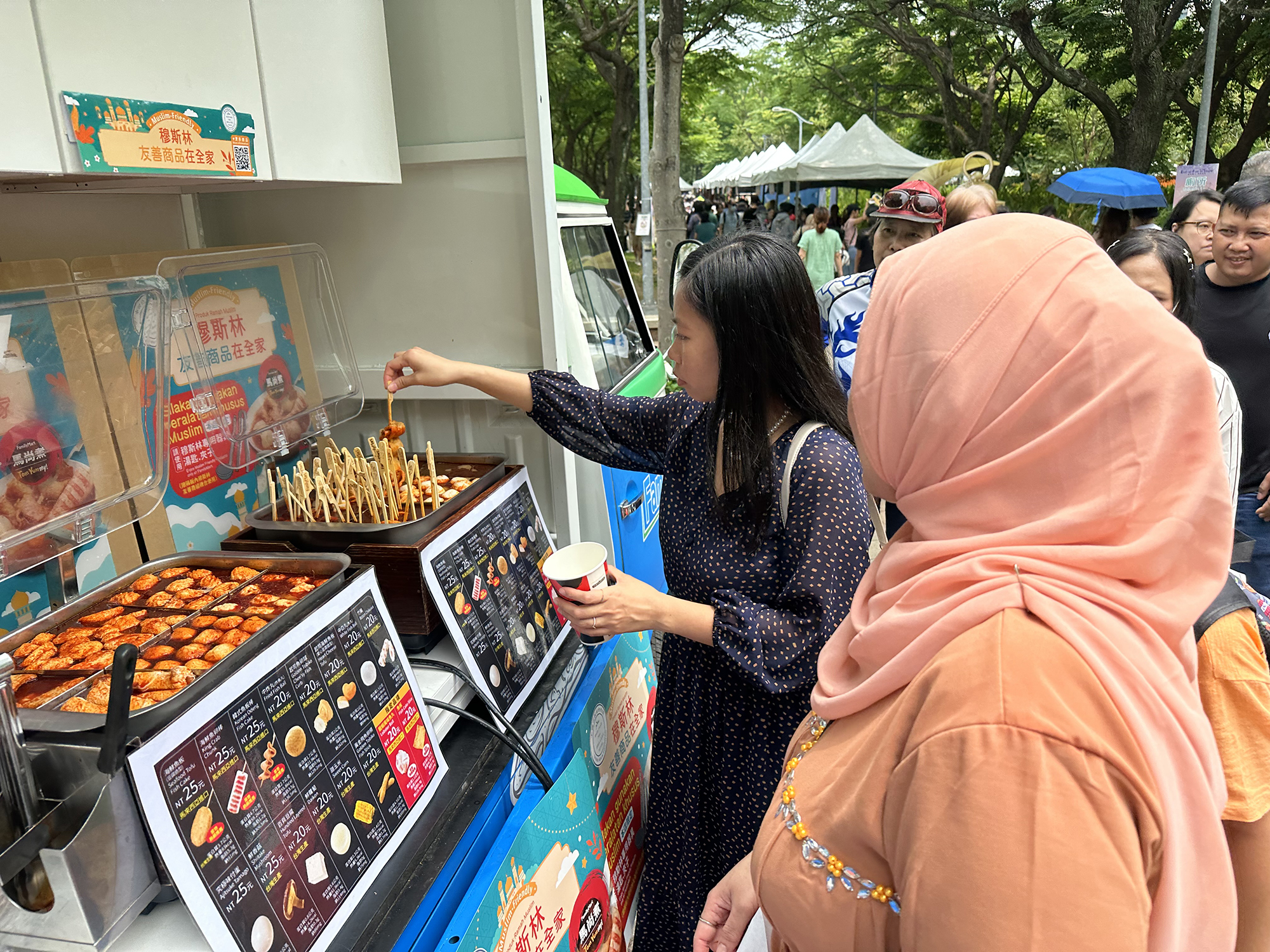「穆斯林友善熟食專區」販售的「馬尚煮」,從馬來西亞引進人氣魚板、魚卵棒、竹輪、炸魚丸等十款海味,搭配泰式冬蔭功湯頭,以及台灣特產的香菇、玉米、百頁豆腐、魚卵條等,蘇淑美說,此區大大方便穆友餐飲,有穆友一嚐大讚:「這就是家鄉味。」