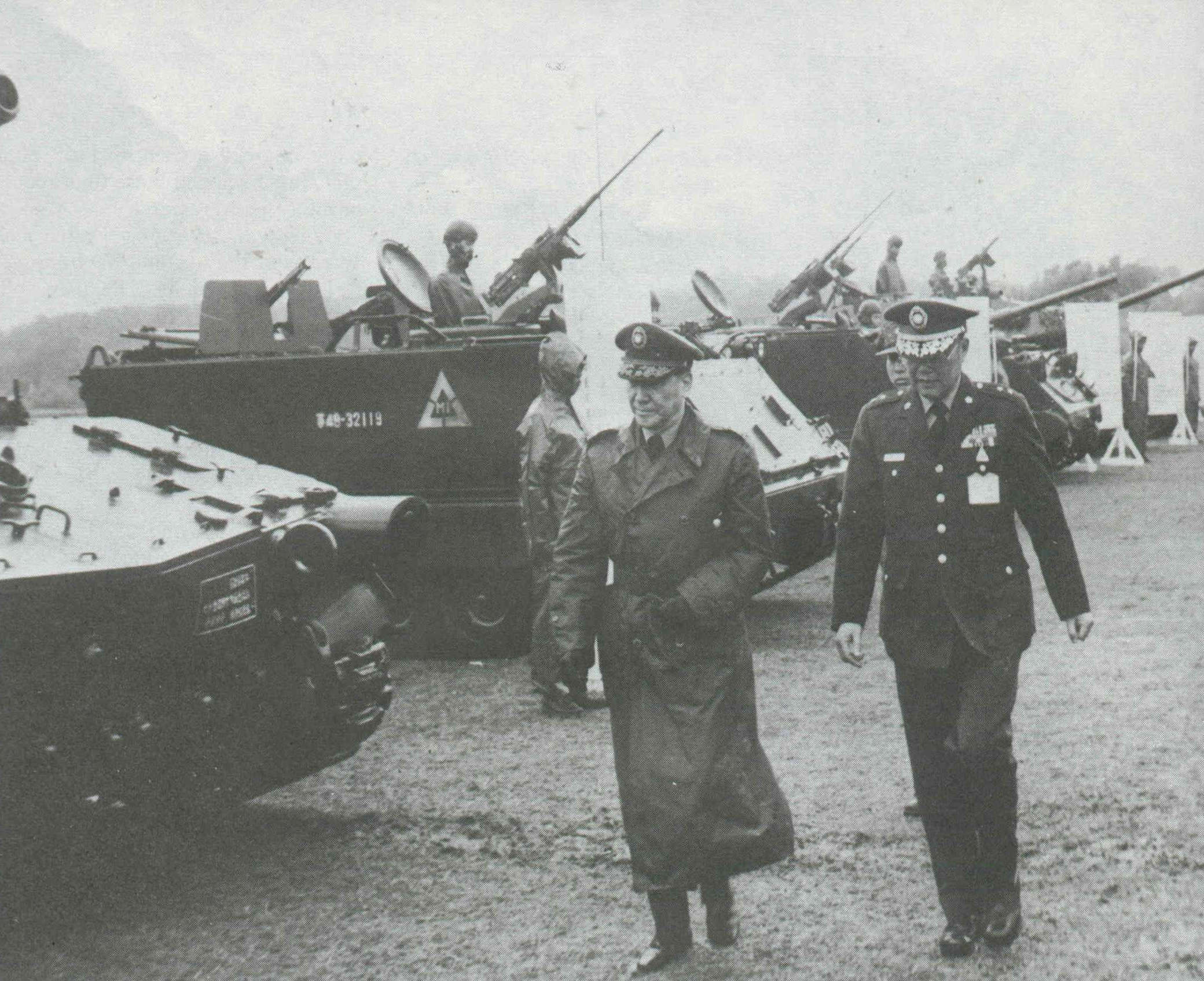 圖3:緯國將軍陪同先總統 蔣公校閱軍事演習。(楊永山/歐陽芷汀/楊清華)