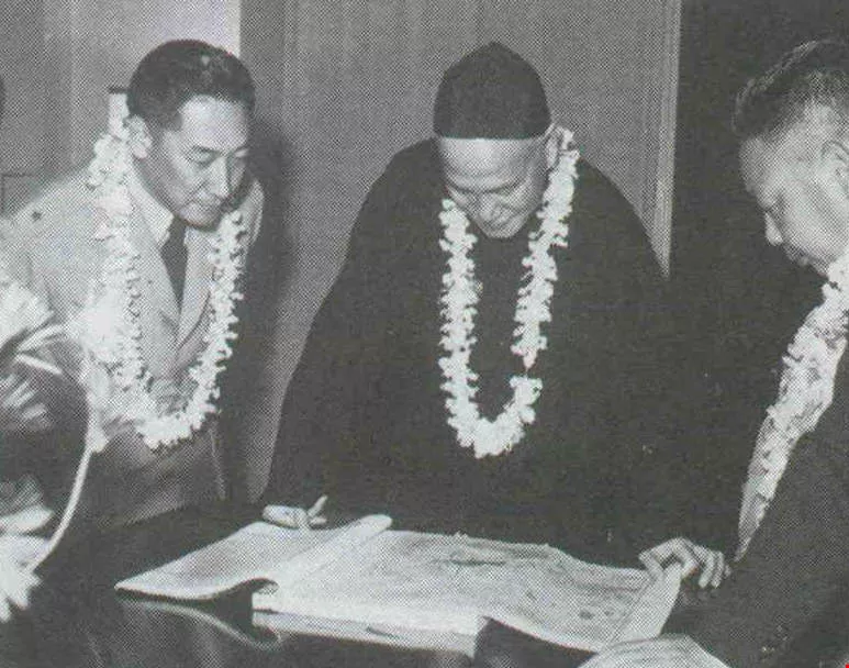 圖4:緯國將軍、經國先生與先總統 蔣公一起看家譜。(楊永山/歐陽芷汀/楊清華)