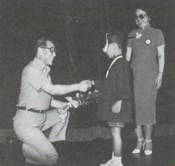 圖3:三軍托兒所舉行畢業典禮,緯國將軍應邀前往參加,特別蹲下向小朋友致賀。