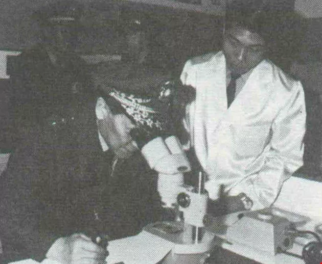 上圖:緯國將軍視察聯勤生產單位的業務,圖為他在看顯微鏡。(楊永山/歐陽芷汀/楊清華)