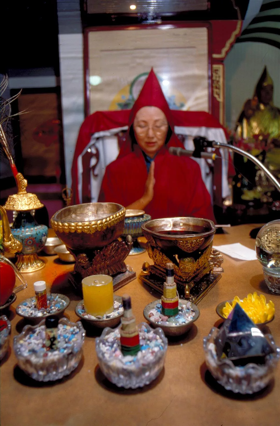 也正因為把一切都當做「如幻的修行」,心中懷有「了脫生死,成佛自在」的更高目標,因此,像許多密宗教徒一樣,鄭用建以「求財心」開始修密,最後卻不再只汲汲營營於名利。生意做成固然高興,做不成也要求自己把沮喪怨怒的心情放淡。「情緒煩躁時,先靜心持咒;有瞭解不開的結,就向上師請益。當你心中有另一份寄託時,生活的確開闊許多」,他說。
