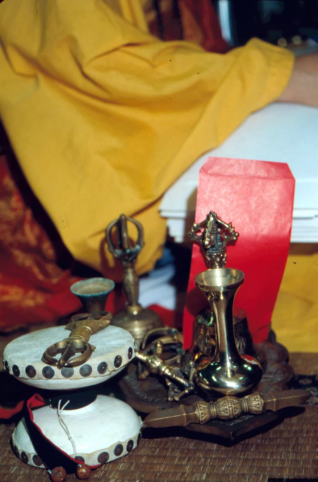 金剛鈴、金剛杵、獨鈷杵、人皮鼓…等,都是修密者必備的法器。(楊文卿)