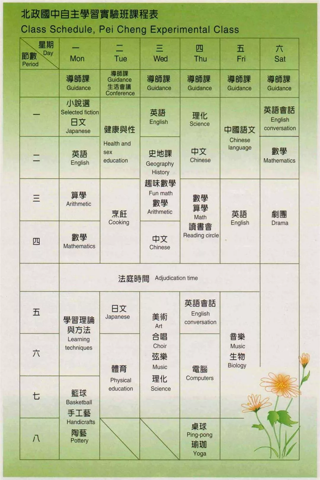 學生訂的課程表