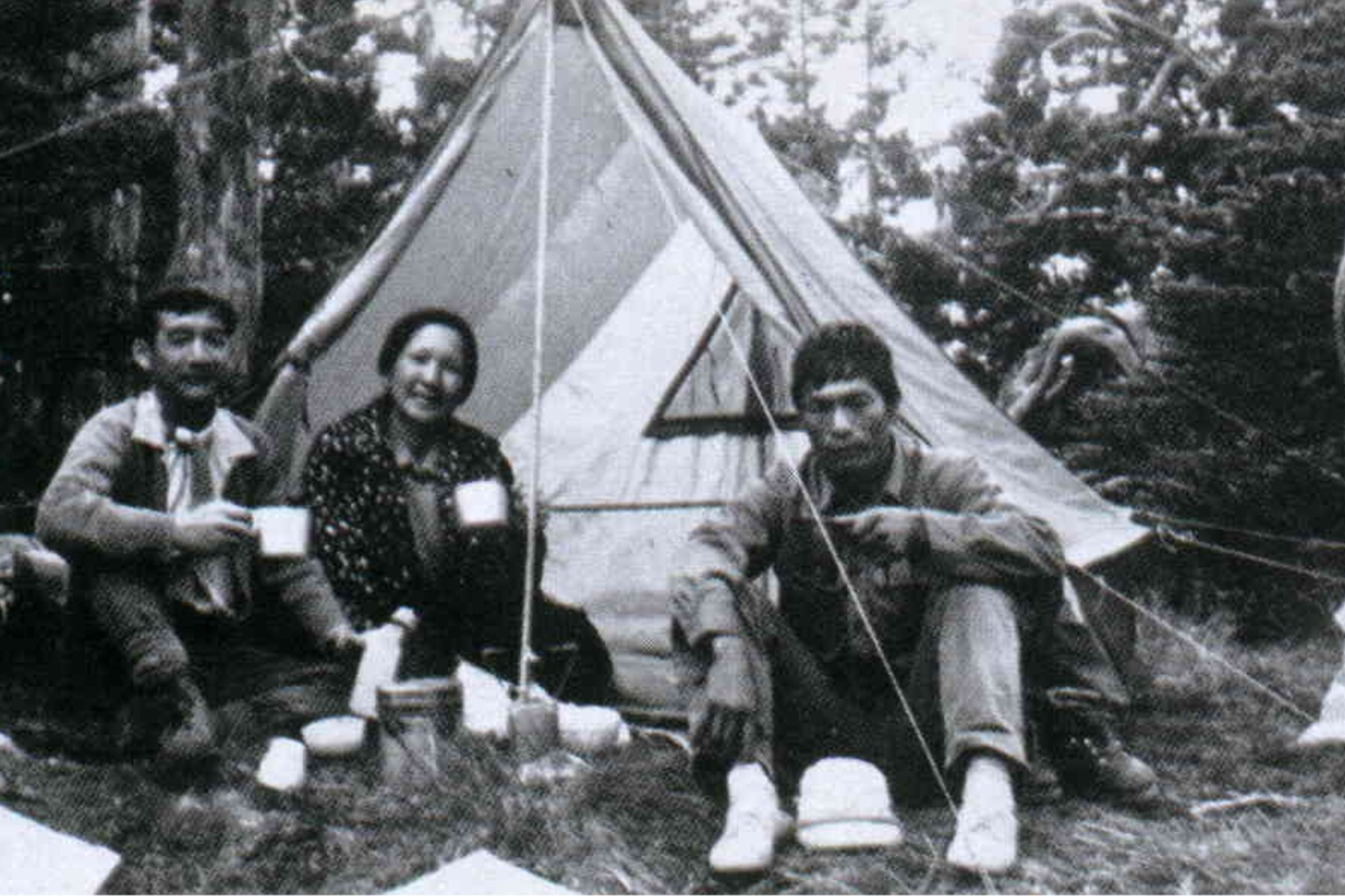 在台灣花蓮縣林田山區七彩湖湖邊憩息。海拔2,900公尺。
