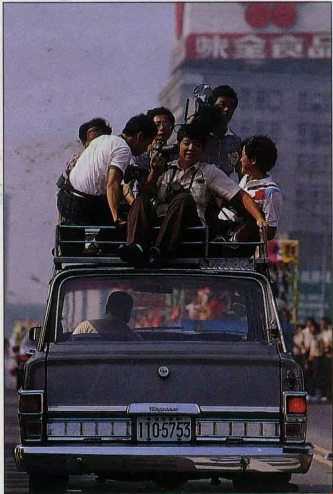 民國七十五年九月,台北市立動物園從圓山搬到木柵時,一些記者跳上旅行車車頂,搶拍動物搬家的鏡頭。(鄭元慶攝)
