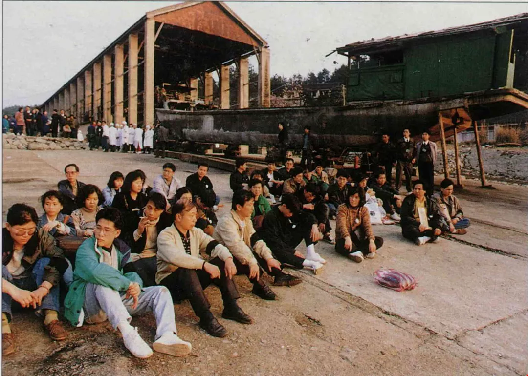 「千島湖事件」發生後,喬裝家屬的記者與家屬們,靜坐在淳安現場抗議。(邢定威攝)(邢定威攝)