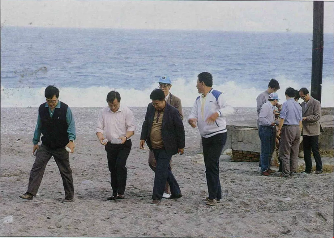 記者們為聯絡感情,常跟受訪者進行各項交誼活動。九○年大陸民運人士來台時,幾位記者陪著到花蓮海邊遊覽。(張良綱)