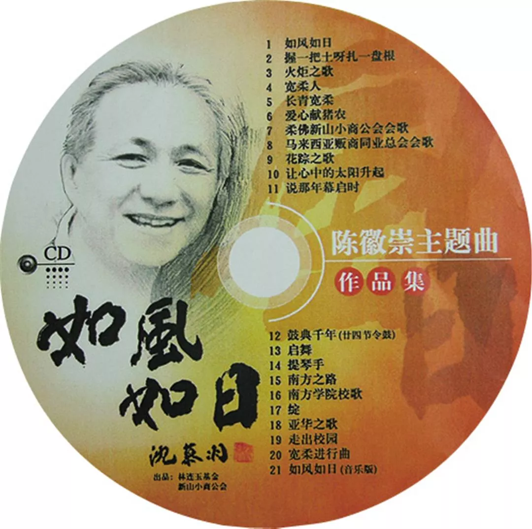 除了詩曲等藝術創作外,陳徽崇也為許多華社組織及學校譜曲。這首「如風如日」,是為有「族魂」之譽的華社大老林連玉所寫,題字的則是另一位馬華鬥士沈慕羽。