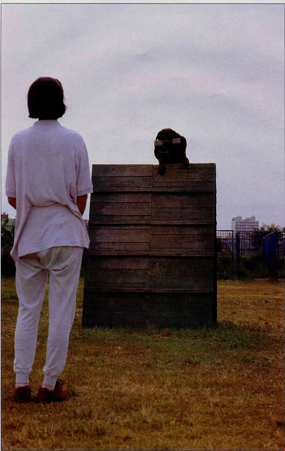 攀越一百八十公分的板壁,銜回一公斤的啞鈴,這種難度較高的動作,是「高級班」的課程。(劉偉群)