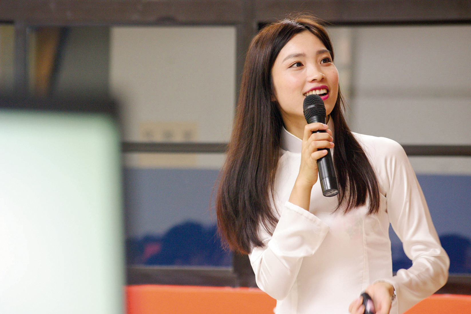 阮秋姮擔任越南語發音的老師,深受學生的喜愛。(阮秋姮提供)