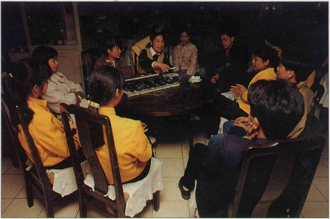 年輕的難僑子弟,不耐農場的辛苦,總希望轉調到城裡的歸難僑企業,收入較高又可以開開眼界。圖為廣州市粵僑大酒家難僑員工正在討論聯誼活動要去哪裡玩。