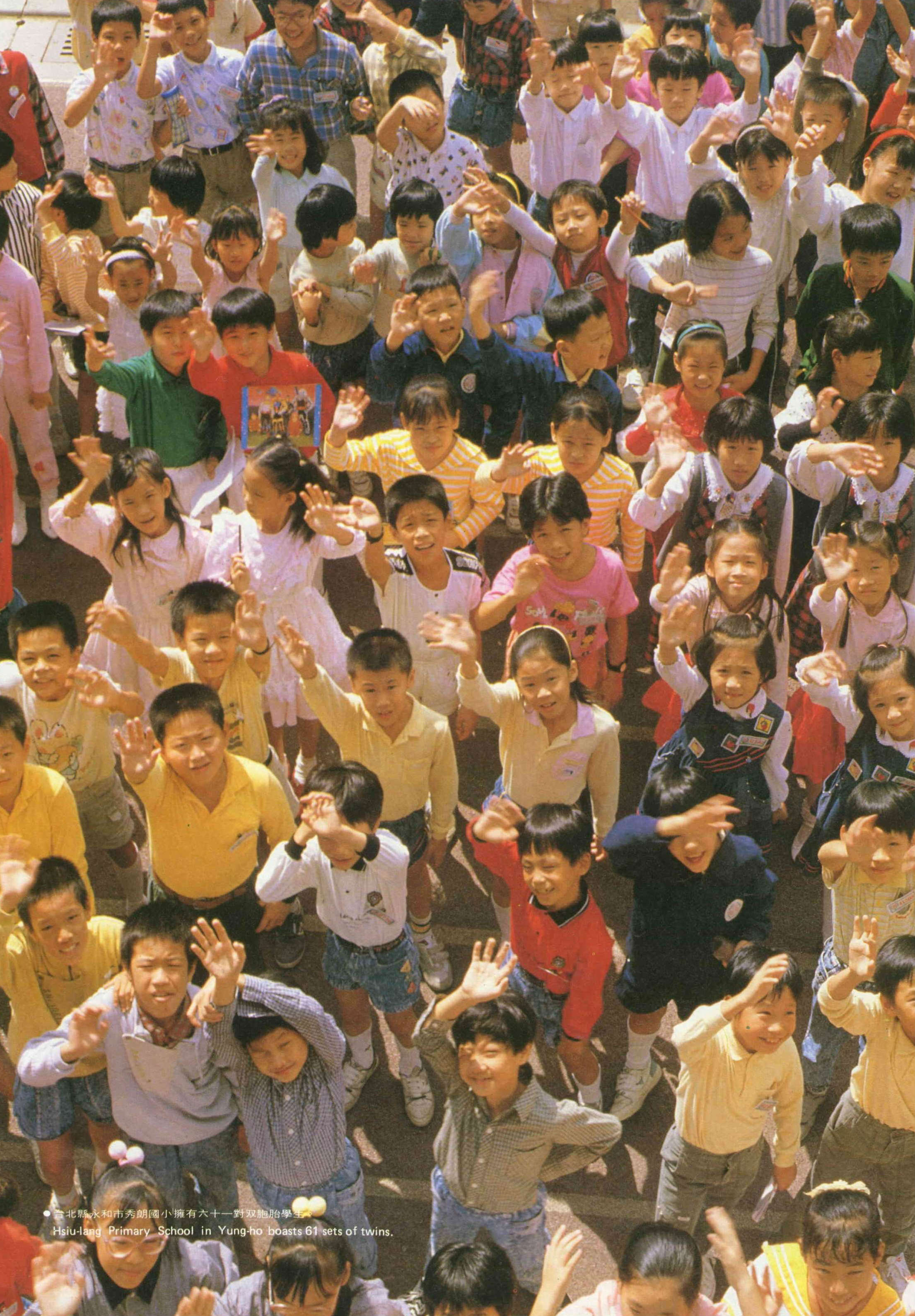 台北縣永和市秀朗國小有近一萬五千名學生中,其中有六十一對雙胞胎,雙生兒的數目和比率都高居國內各學校團體第一位。學校對於雙胞胎是否分在同一個班級,全由父母決定。最近學校輔導室正進行一項研究:到底雙胞胎在同班還是分班的學習效果人際關係較好?