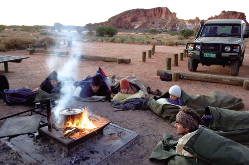 在國家公園的「彩虹谷」露營時,Christine第一次睡到澳洲牧人慣用的「Swag」(帆布外袋內襯軟墊、再加上自己的睡袋),對她來說是極為新奇的體驗。