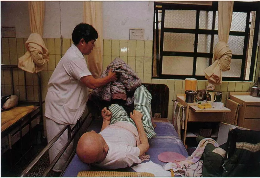施乾生前常指著身上襤褸不堪的乞兒對二女兒說,這些人都是她的兄弟。施美代說,也許從小看多了,如今她為老病人擦身、把尿,從不引以為苦。