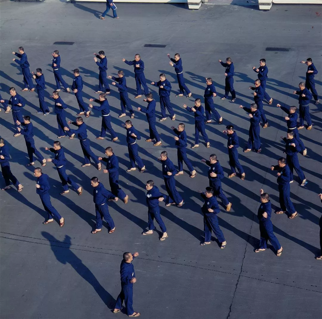 在走道上,不時會遇見身著藍色衣褲的受刑人,他們蓄著三分頭,有眉清目秀的年輕人,有面帶風霜的中年人,甚至有兩鬢斑白的老年人。