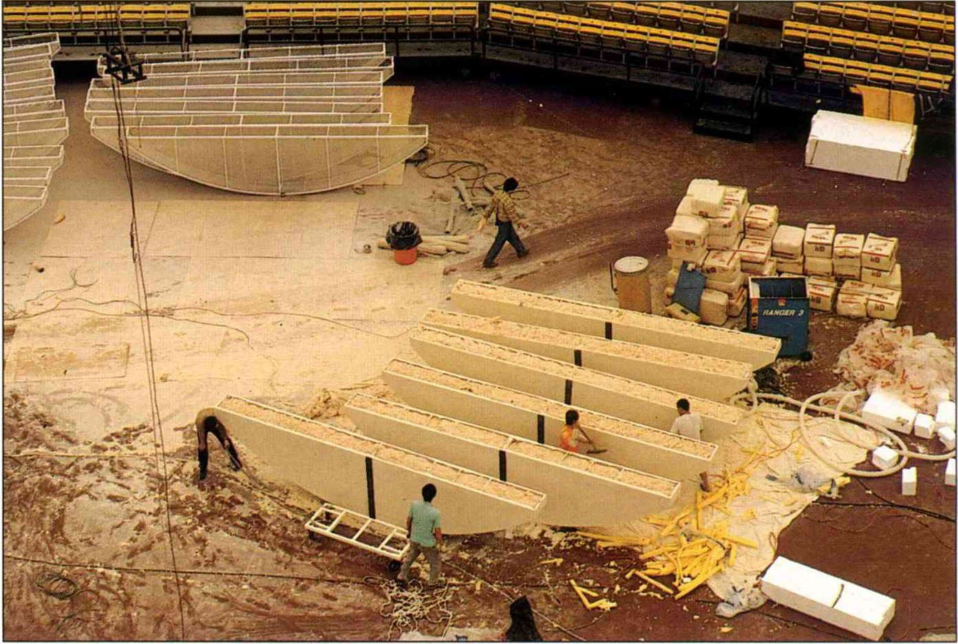 民國八十二年,為台灣區運動會而興建的桃園縣立體育館,採用的是所謂「大跨距建築」,整棟建築物不加柱子,以結構計算的方式,與模作結合,「爭取的是建築底部的最大空間,」巨蛋建築師陳信樟表示。