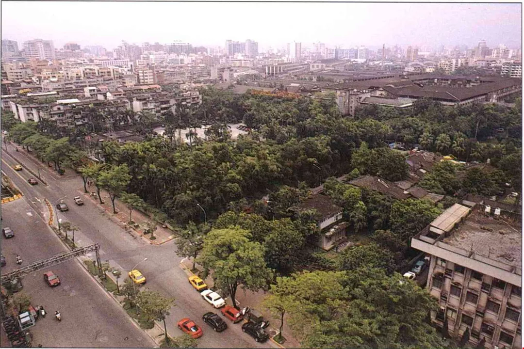 綠蔭中的松山菸廠是台北巨蛋預定興建的地點之一。(薛繼光)