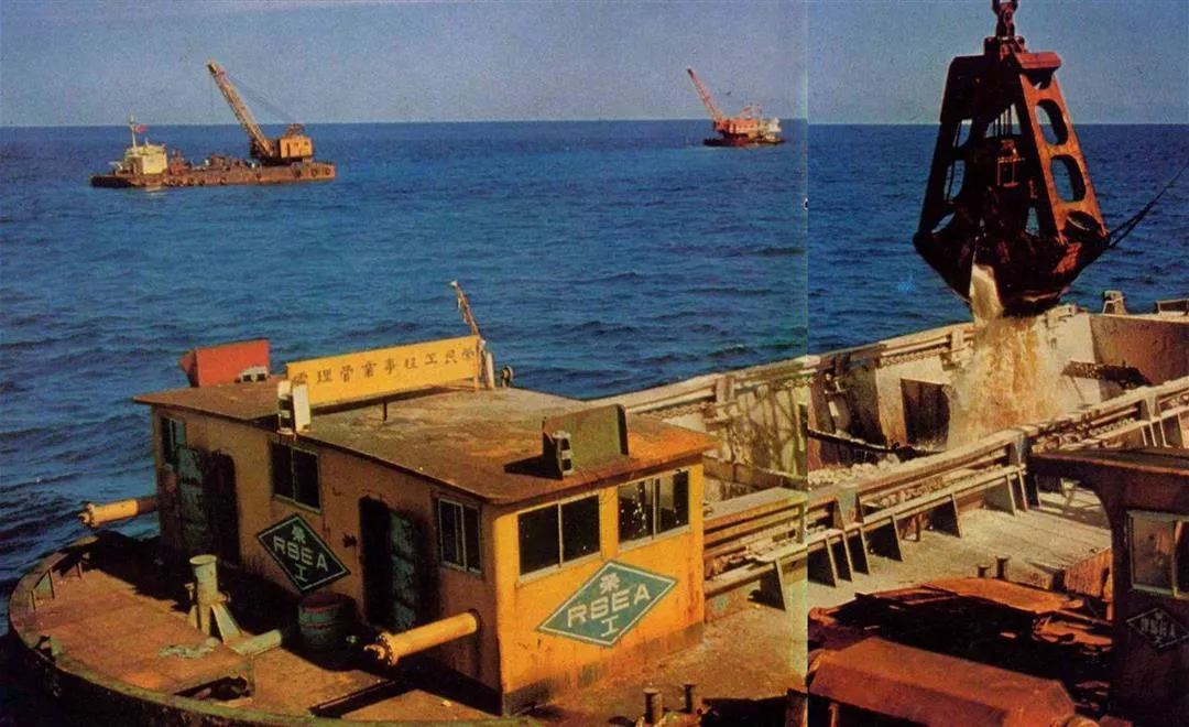 榮工處在越南實施的濬渫工程。當時越南在砲火中,工作時還得有人持機關槍在旁保護。