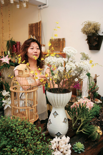 陳以瑜經營的是用乾燥花佈置裝潢的「傻大姊花材苑」,兩個月前才從中山北路120坪、租金達16萬元的舊址,搬遷至農安街面積較小的新址,不想再把辛苦賺的錢都拿來付房租,新工作室的租金不到4萬元,讓她更可以隨心所欲的創作與工作。