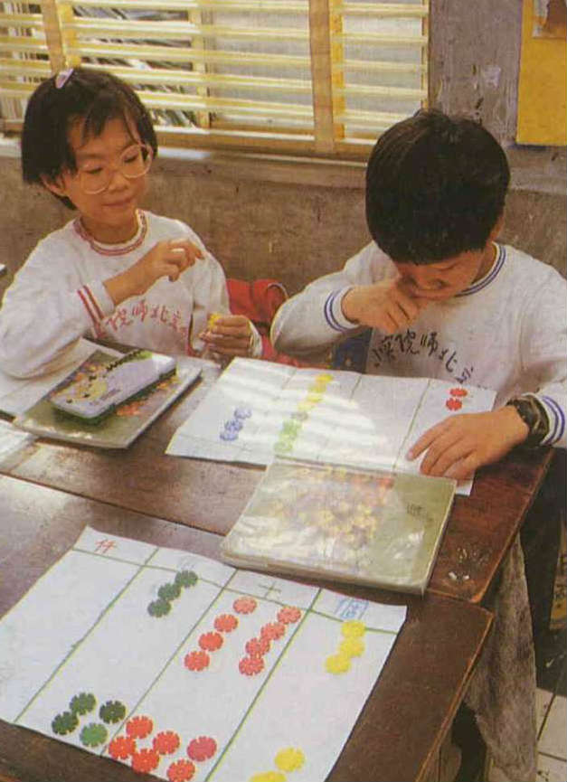 學了五年功文數學的盧珊樺目前已在做國一數學,但不免在碰到面積、圖形等問題時出現「不知怎麼列算式」的窘境;「只要有算式,我就會做」,她說。
