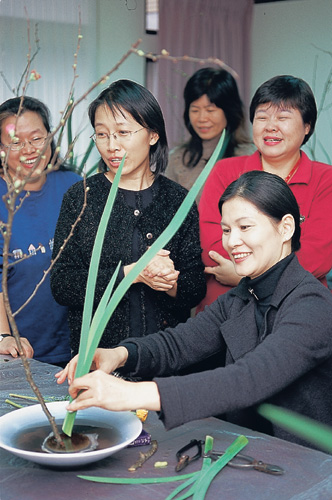 教授插花十多年的李玉琴,二十多年前嫁作人婦之後,終日忙著照顧婆家中風的老奶奶、眼睛近盲的公公,還要拉拔3個兒女,日子的忙碌緊張,不難想像。