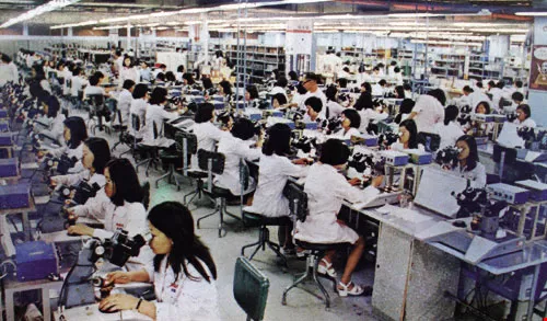 5,000坪大、24小時輪班運轉的RCA桃園廠,全盛時期一天生產6,000台電視機所需的電子零件,作業員的吃飯時間只有半小時,有時連手都沒洗就趕著去排隊吃飯。