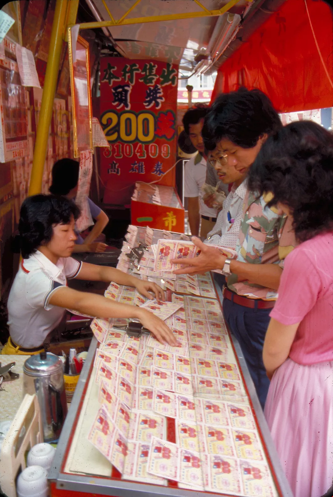 中南部地區熱中愛國獎券的人多,獎券買賣比他地興旺,高雄、左營、臺南等地更有整條街都是獎券行與獎券攤,一入夜,走馬燈、霓紅燈爭輝,映著大紅招牌在人眼前閃爍。而且幾乎家家都在顯眼的地方張貼某期售出第一特獎的紅紙條,欲以過去的輝煌業績招徠舊雨新知。